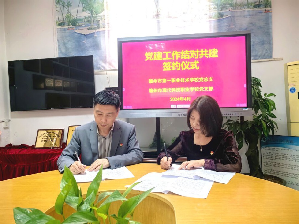 黨建引領(lǐng)聚合力 結(jié)對(duì)共建促發(fā)展——贛州現(xiàn)代科技職業(yè)學(xué)校與贛州市第一職業(yè)技術(shù)學(xué)校結(jié)對(duì)共建簽約儀式
